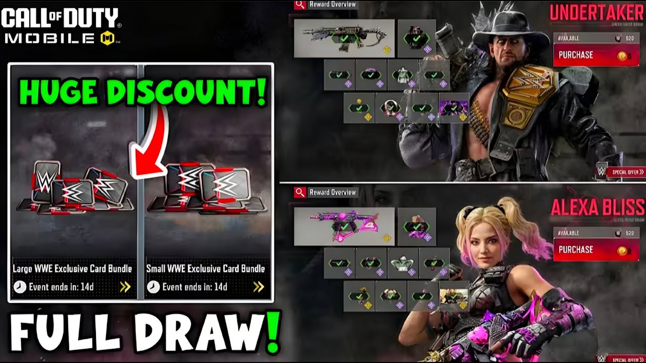 COD Mobile WWE Draw, Call of Duty Mobile WWE, CODM Undertaker skin, CODM Alexa Bliss skin, CODM Lucky Draw 2025, Call of Duty Mobile draw opening, CODM Undertaker bundle, CODM Alexa Bliss bundle, COD Mobile full draw, CODM new event 2025, CODM WWE collaboration, WWE x CODM, Undertaker CODM gameplay, Alexa Bliss CODM draw, CODM discount event, Call of Duty Mobile full event draw