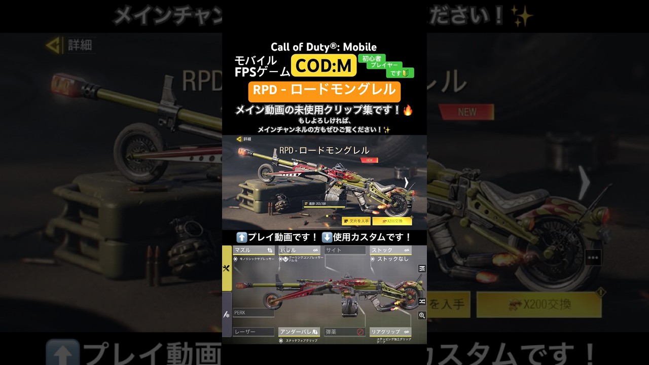 ご視聴ありがとうございます!「Call of Duty®: Mobile」というモバイルゲームで、RPDというライトマシンガンの、「RPD – ロードモングレル」というレジェンド迷彩を使用してプレイした動画です!強い武器のため、もしご興味をお持ちになられた方はぜひお試しください!✨️